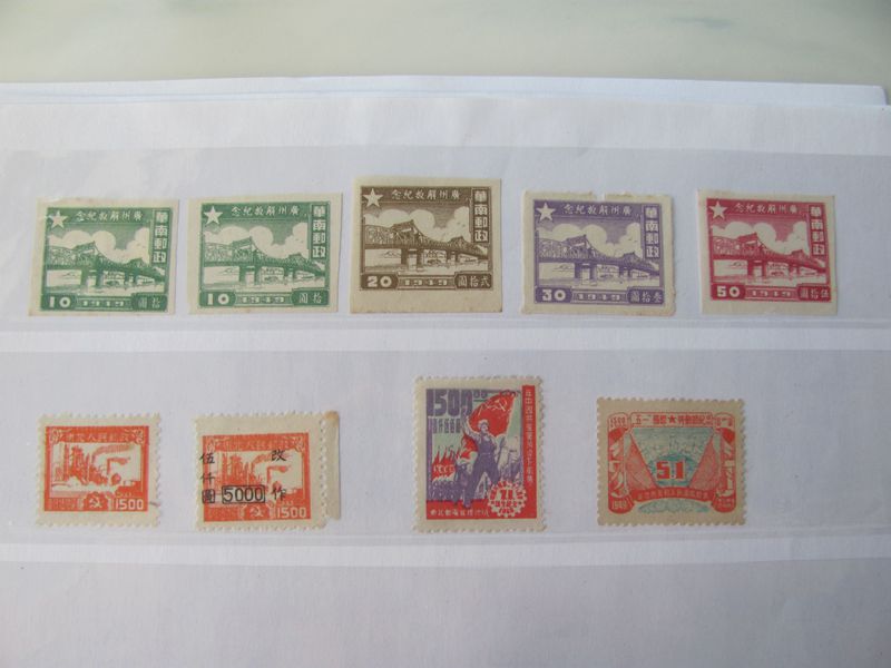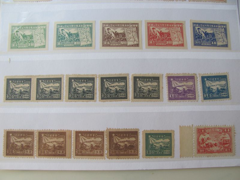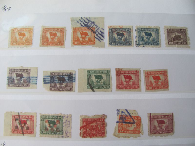 低价出售民国、淮海、南京、广州解放等邮票和印花税票,新旧都有,品如图,有几枚全戳,不懂价格,看好确认,400元一起出售,售出不退。看图请加手机微信19982821886联系。
