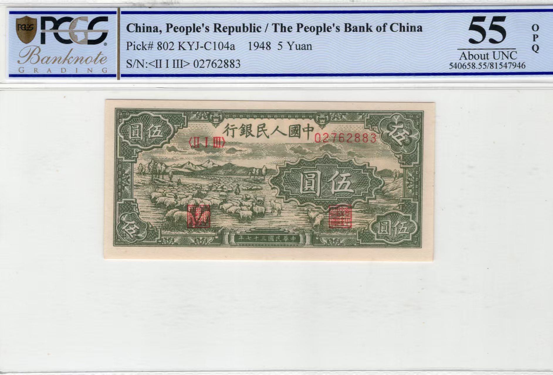 绵羊首发组PCGS美评55OPQ无4,全新原票,未见明显折痕,售价3550包顺丰