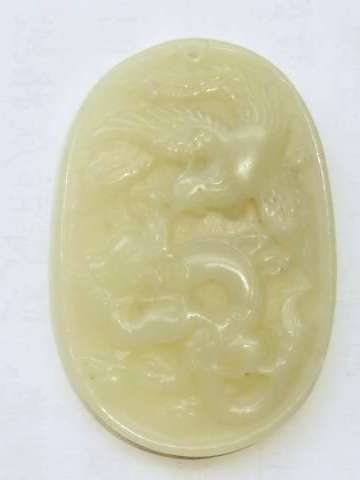 → 和田黄口玉龙凤成像牌子挂件一件