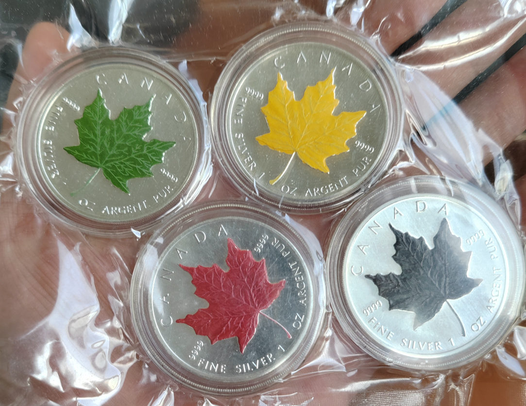 加拿大 2003年 1盎司枫叶银币4枚 加彩春夏秋冬