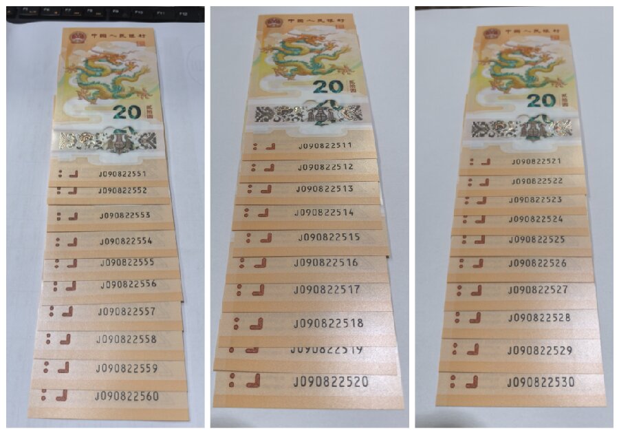 出售小龙钞标十同刀3组 J090822551 7500元每组 J090822511 5500元每组 J090822521 5500元每组 一手货无人为,无指甲印,未评过任何评级公司,包顺丰