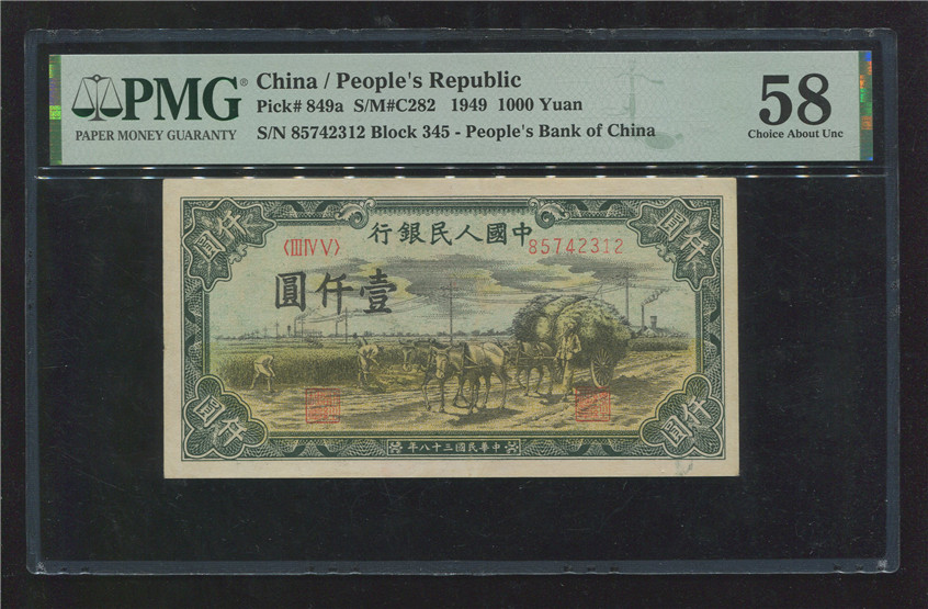 一版1000元秋收 PMG 58 无背标 6888元,