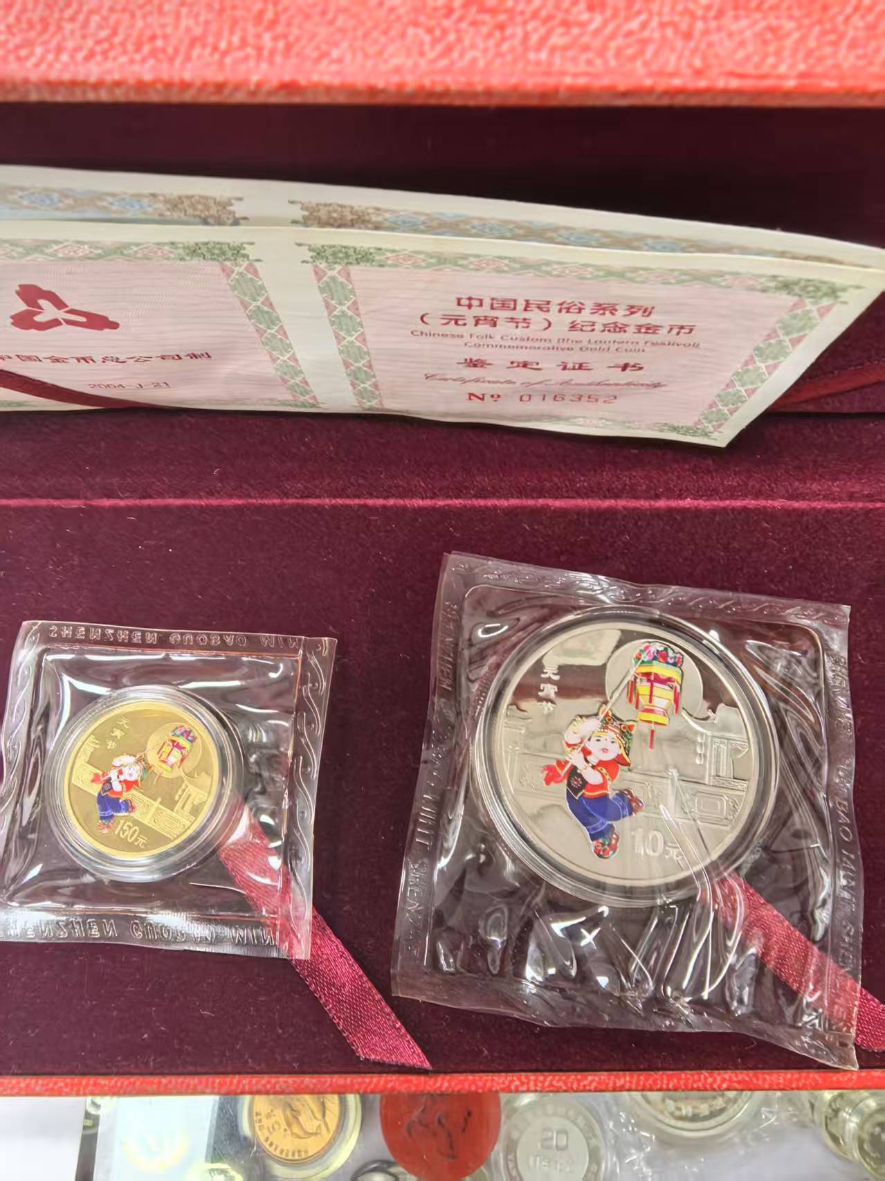04年元宵节彩金银11300元,08年改革30周年金银8350,16年彩金银猴3600元,06年本金银狗3650元,银币氧化背发黑。