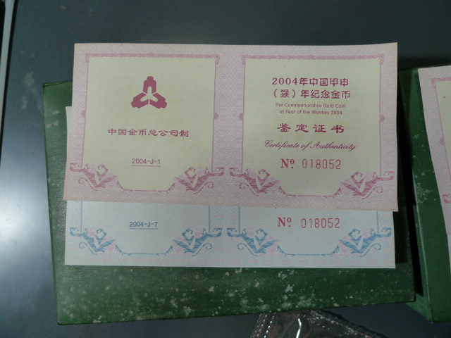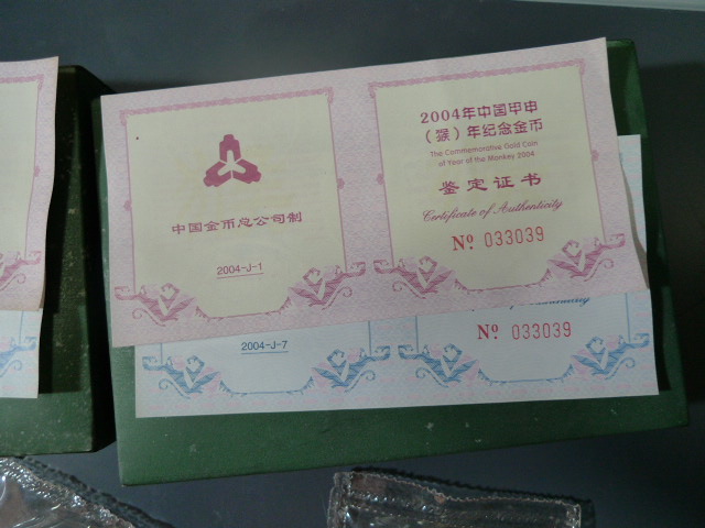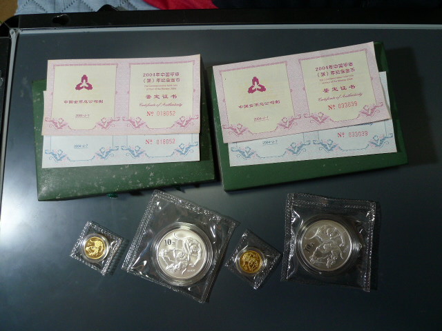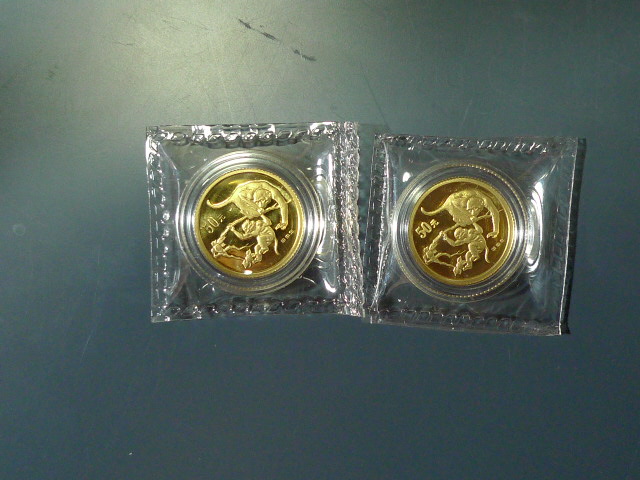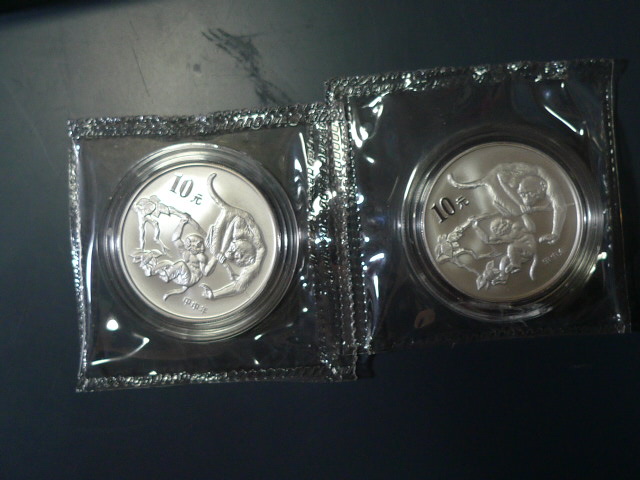 → 出售2004年好品本金银猴两套。