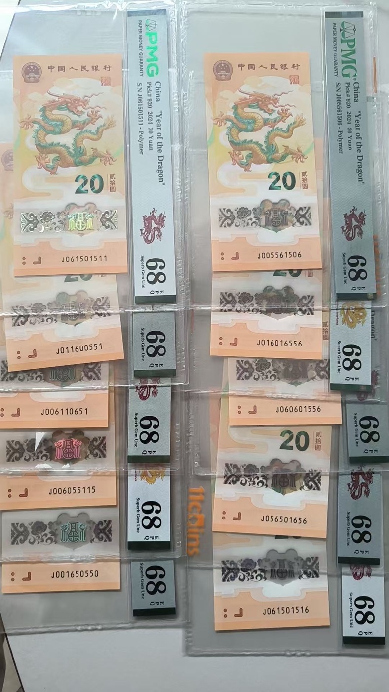 → 出小龙钞0156组合PMG68分,2400×10=24000元