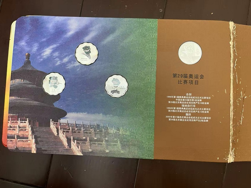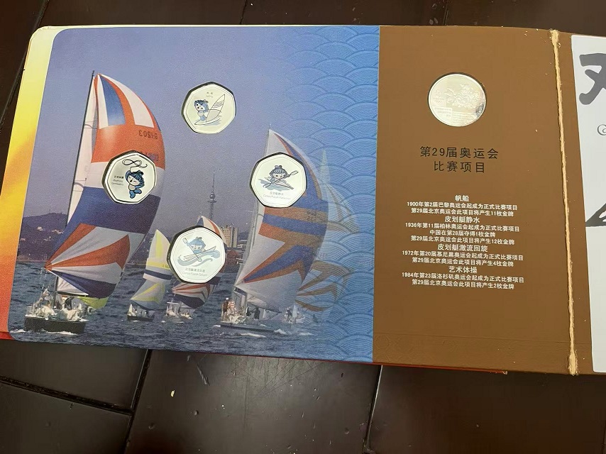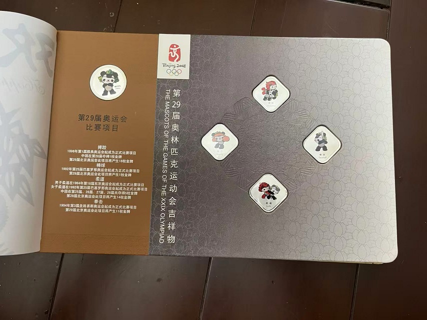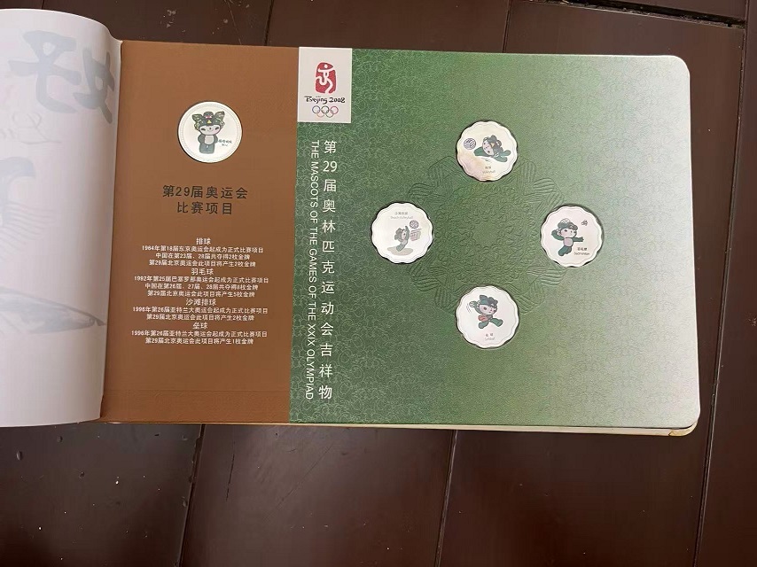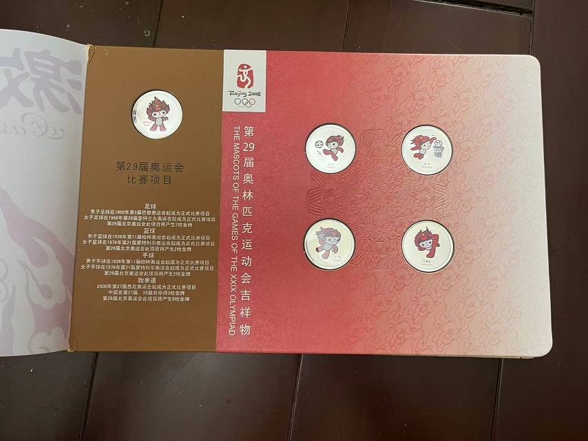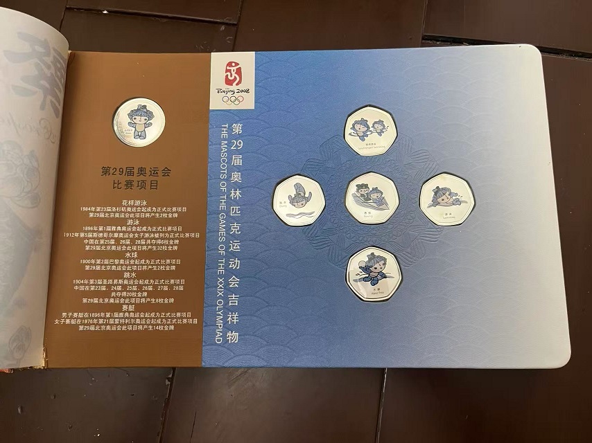 → 售第29届奥运会吉祥物运动造型彩色渡银纪念铜章26枚套装,有2本