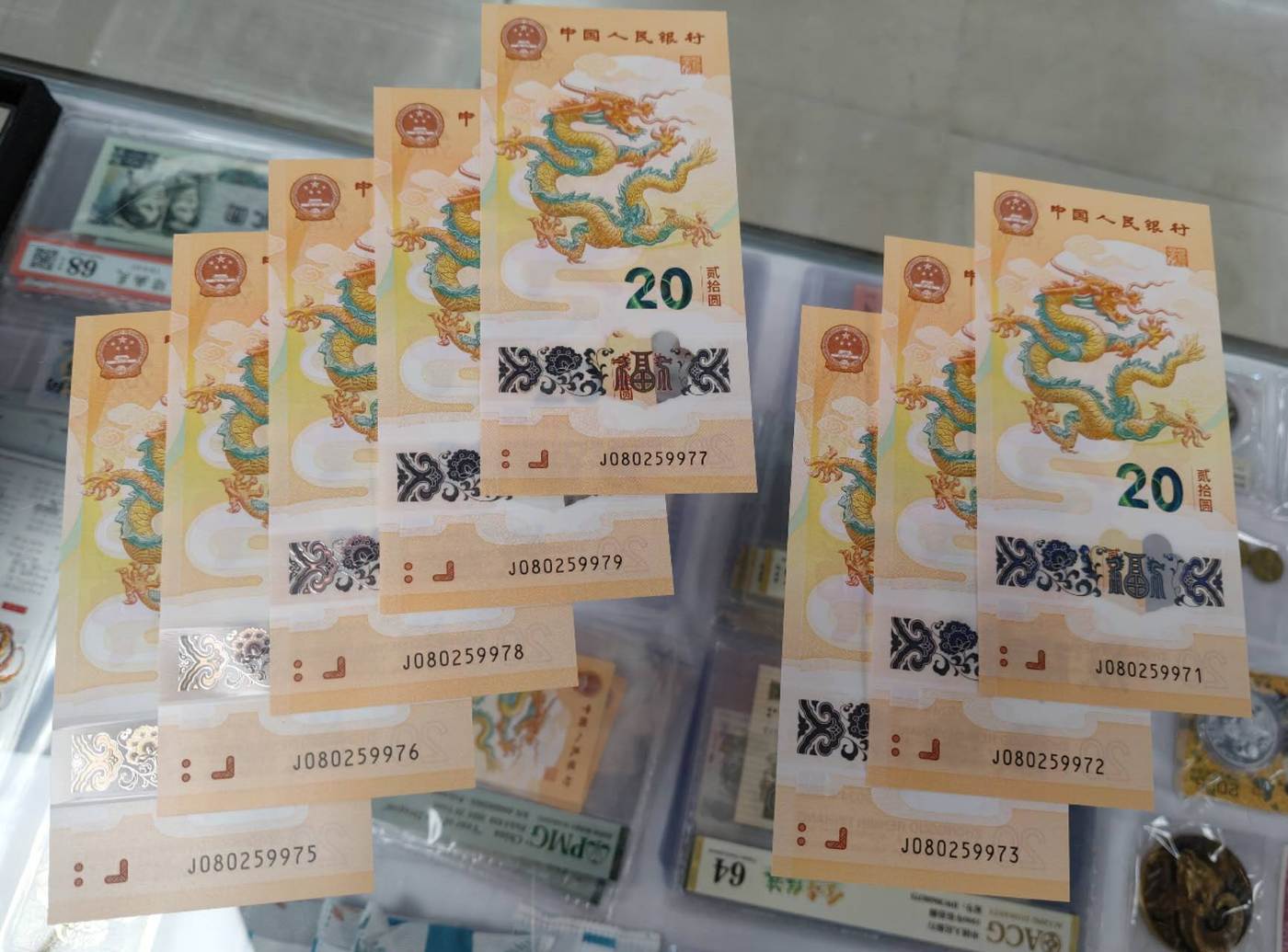 龙钞无三四大连号八张。未流通品无折无指甲印无人为,号码如图、如图发货三包。