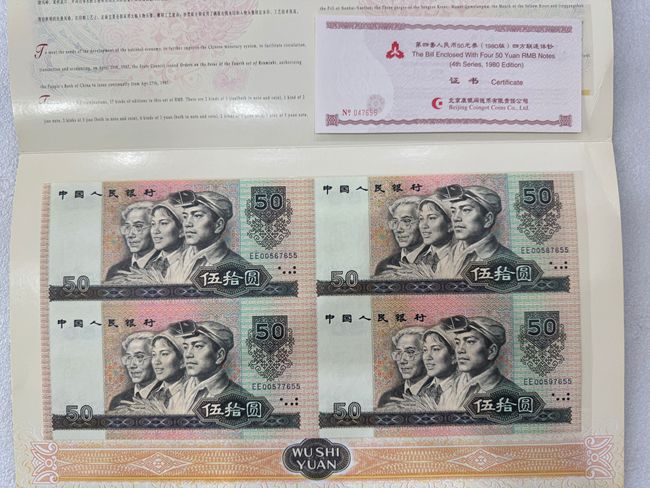 8050;EE00567655--00577655--00587655--00597655 证钞对号品相好包装全3480元.