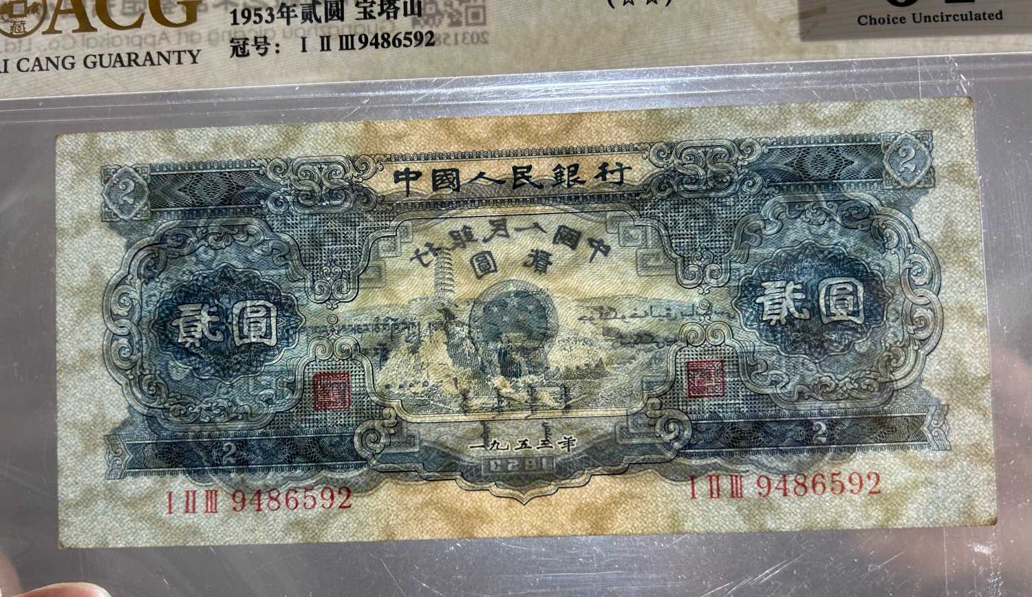 宝塔山一张,号码6472616,原票,爱藏64E,售价:1380元