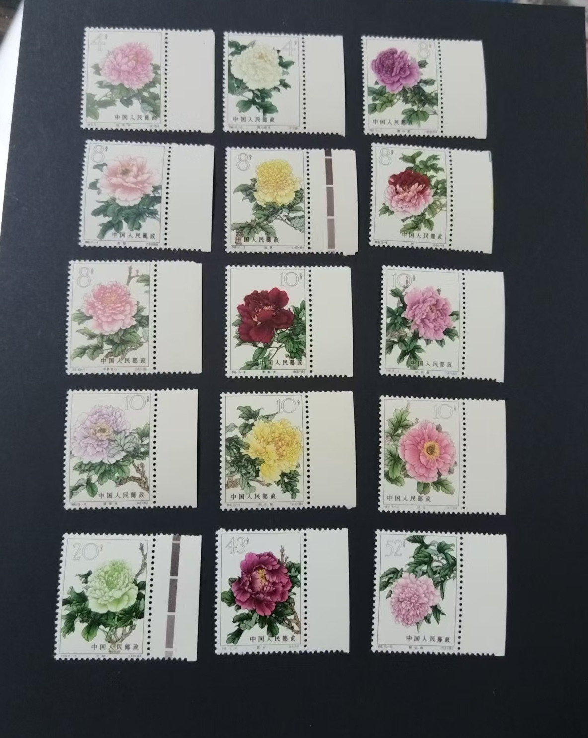 特61牡丹带边一套,原胶,有5枚低值有一点黄,其他无黄