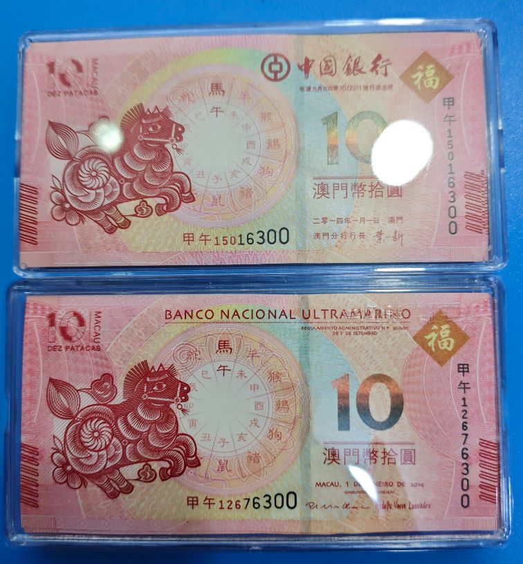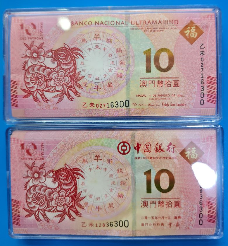 澳门生肖钞,龙,马,羊各一对刀,尾三同一起出,1万元,