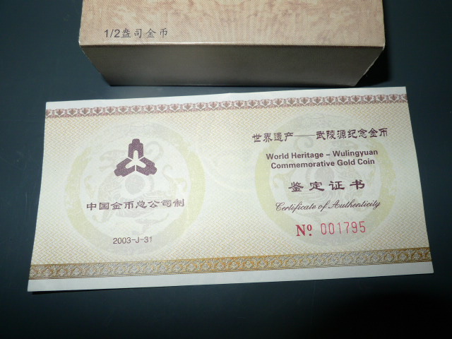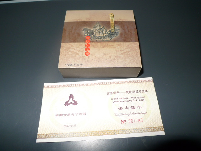 → 出售1/2盎司武陵源金币一枚原封好品。