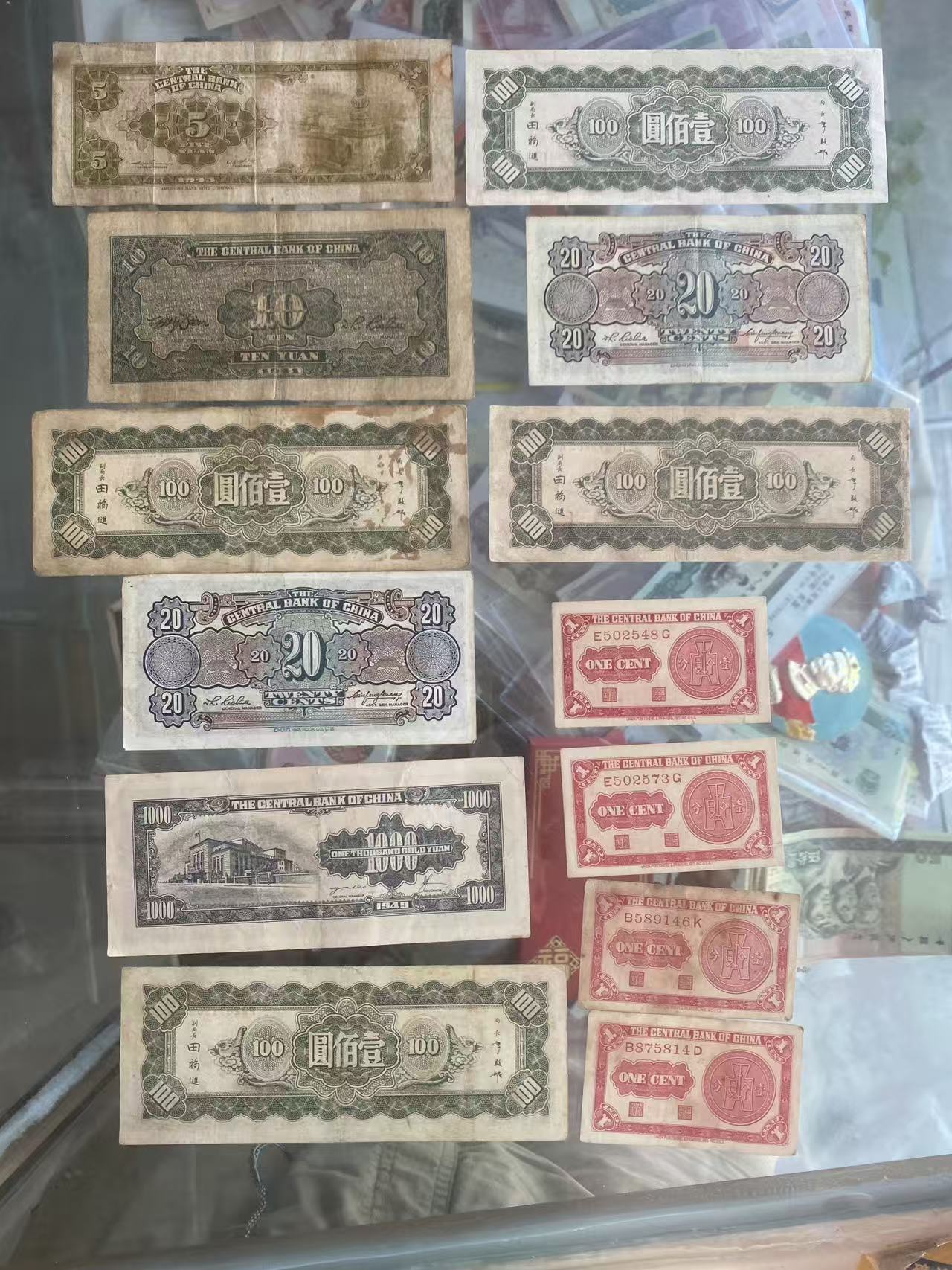 交通银行 11张*27 后面的 中国银行9张 农民银行一张 中央银行13张 23张一起390