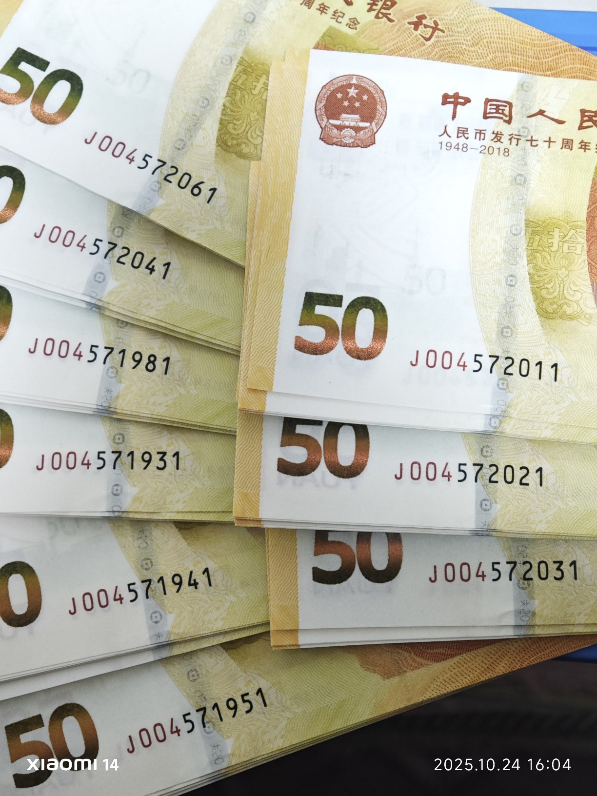 → 70钞年份号标十连