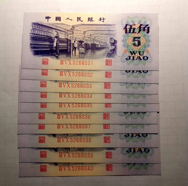 三版五角平版标十,从把币中拆出,长码冠号,全程不带47,油墨重,打码明显,凹凸感很强,四角尖尖,无脏无黑,灯下无斑,适合收藏或配册,小瑕疵图上可见。588元包快,售出非假不退,看好确认。中意的朋友来聊,微信同号。