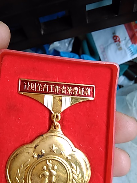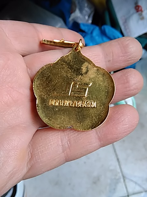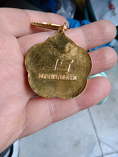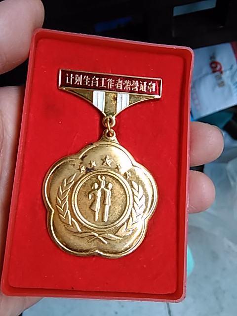 → 计划生育 奖章 一个 镀金