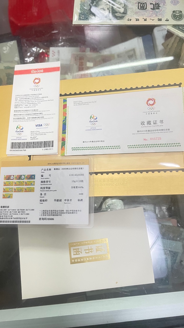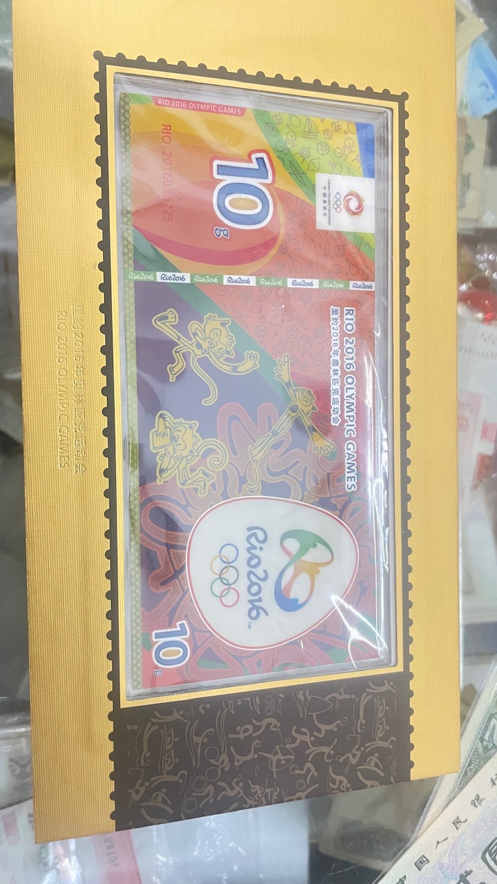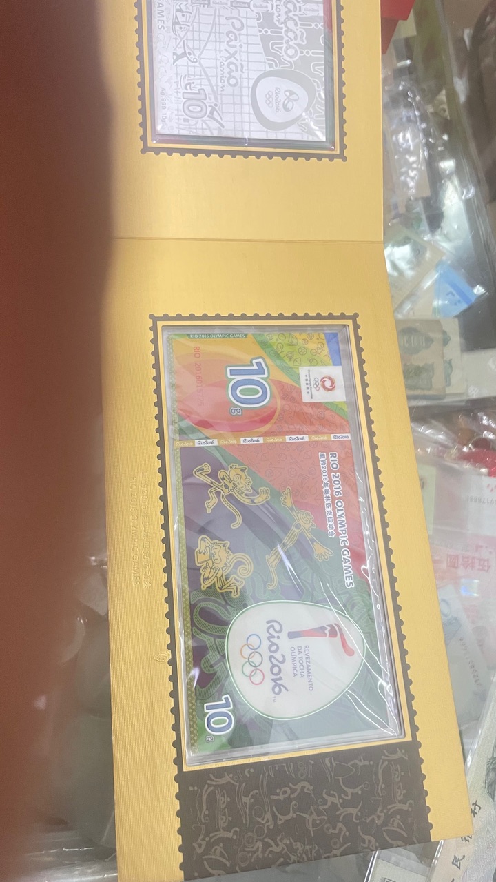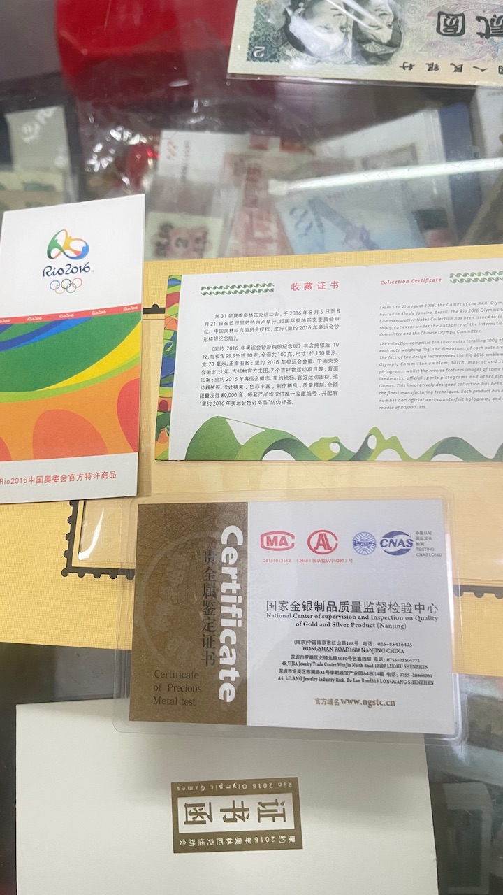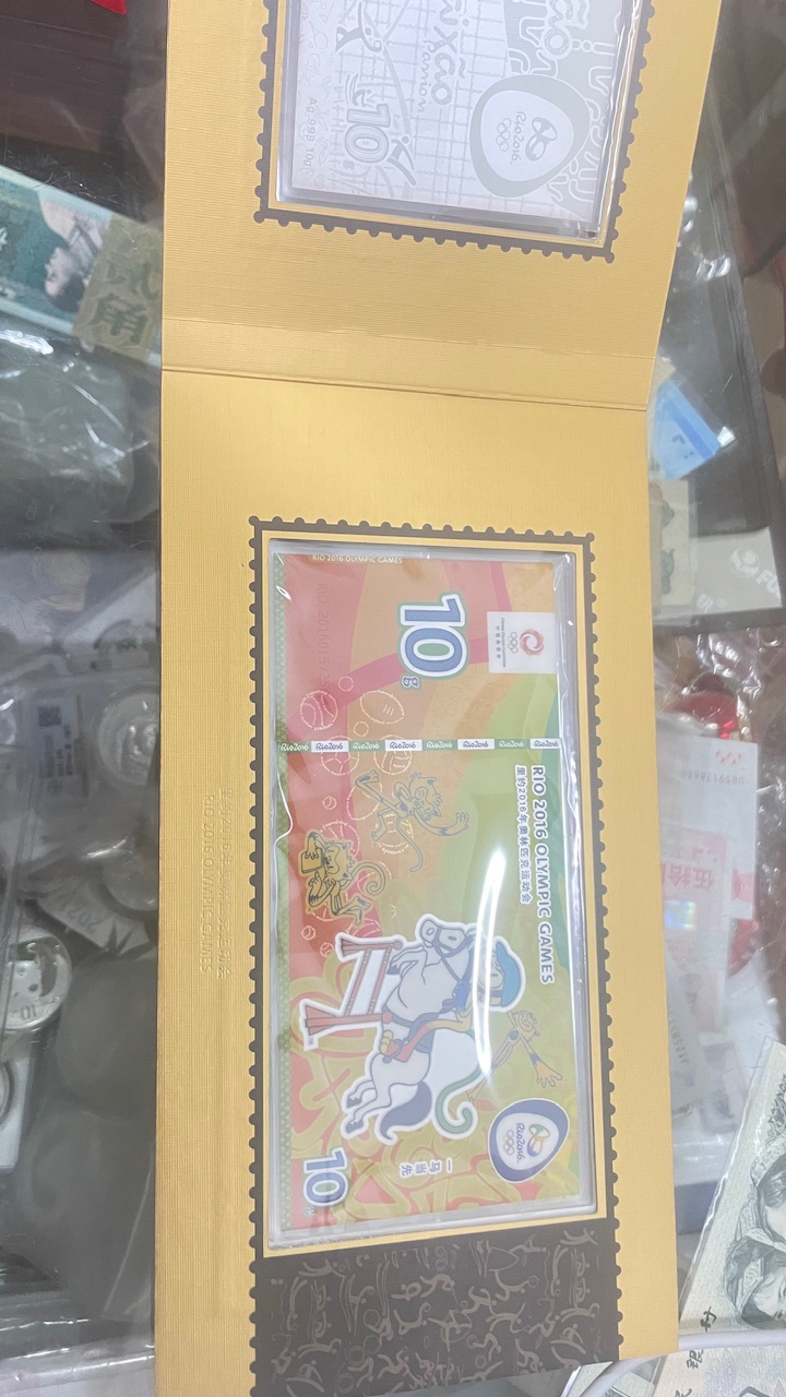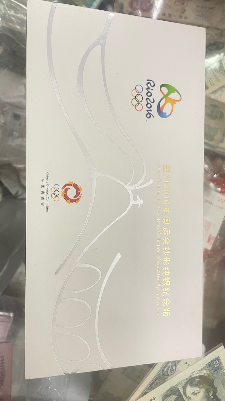 → 出里约2016年奥运会钞形纯银纪念版100克,盒证齐全