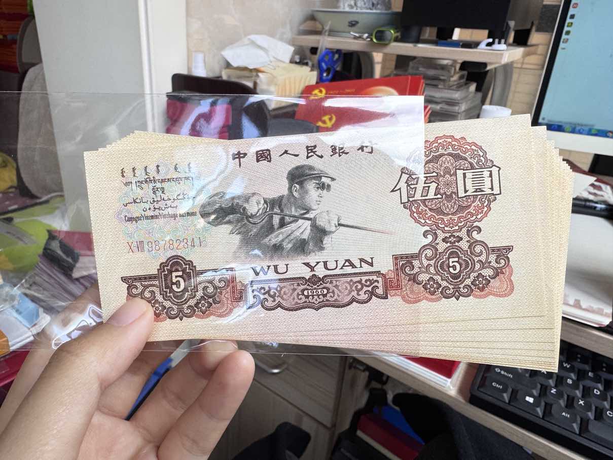 → 三版5元炼钢工人,十张连号,290一张。全品