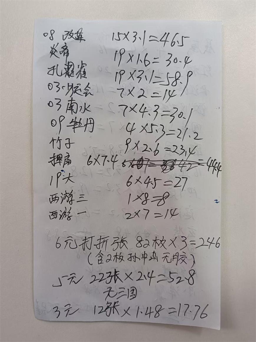 6元打折张82枚*3元=246元
