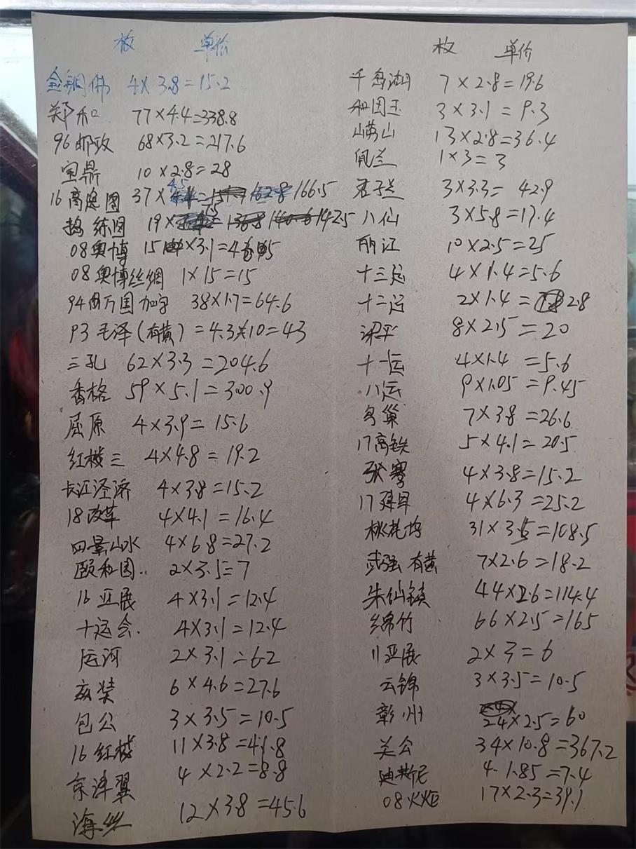 05十运会m4张*3.1元=12.4元、
