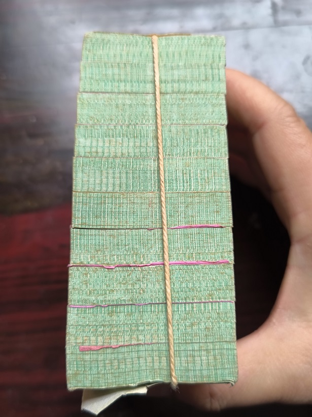 如图,原捆,边有微油和微斑。