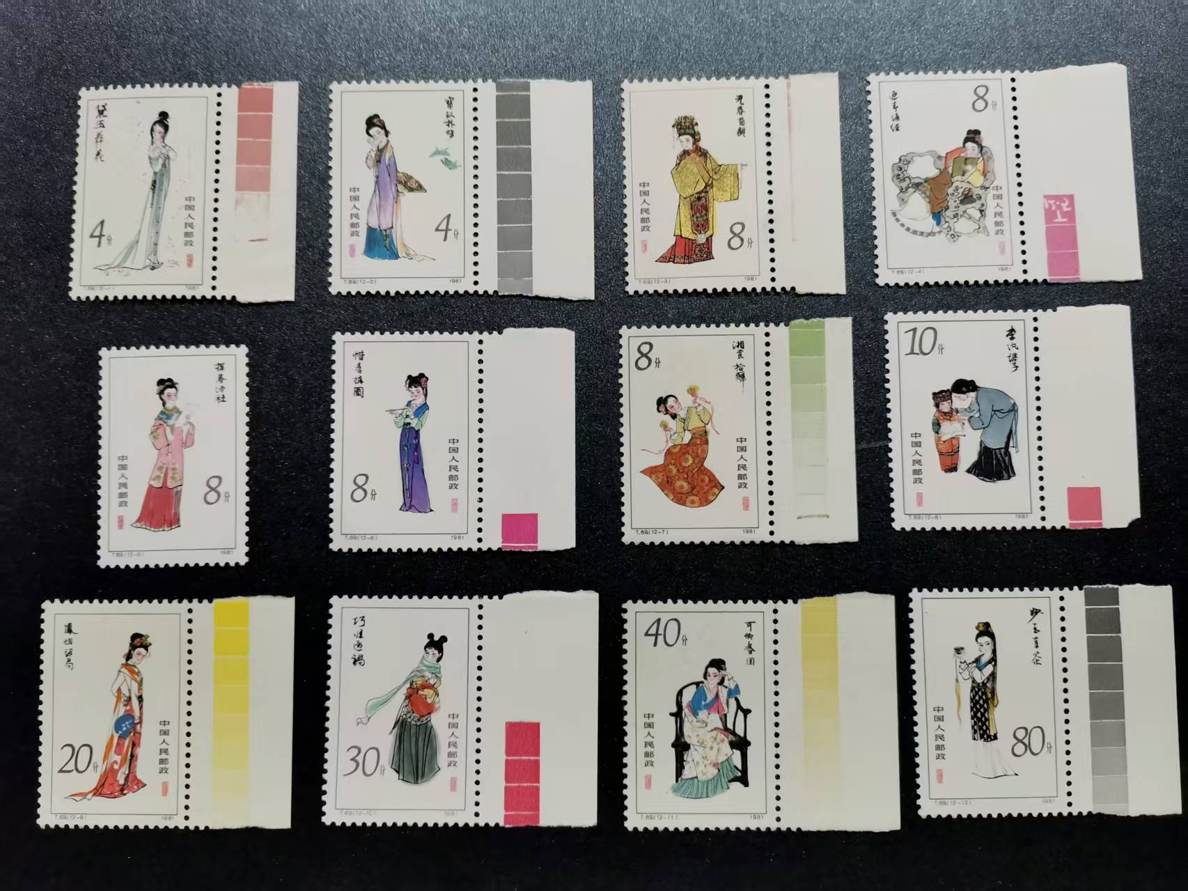 红楼梦11个色标,仅-5不带,40分边纸折,个别微黄400元
