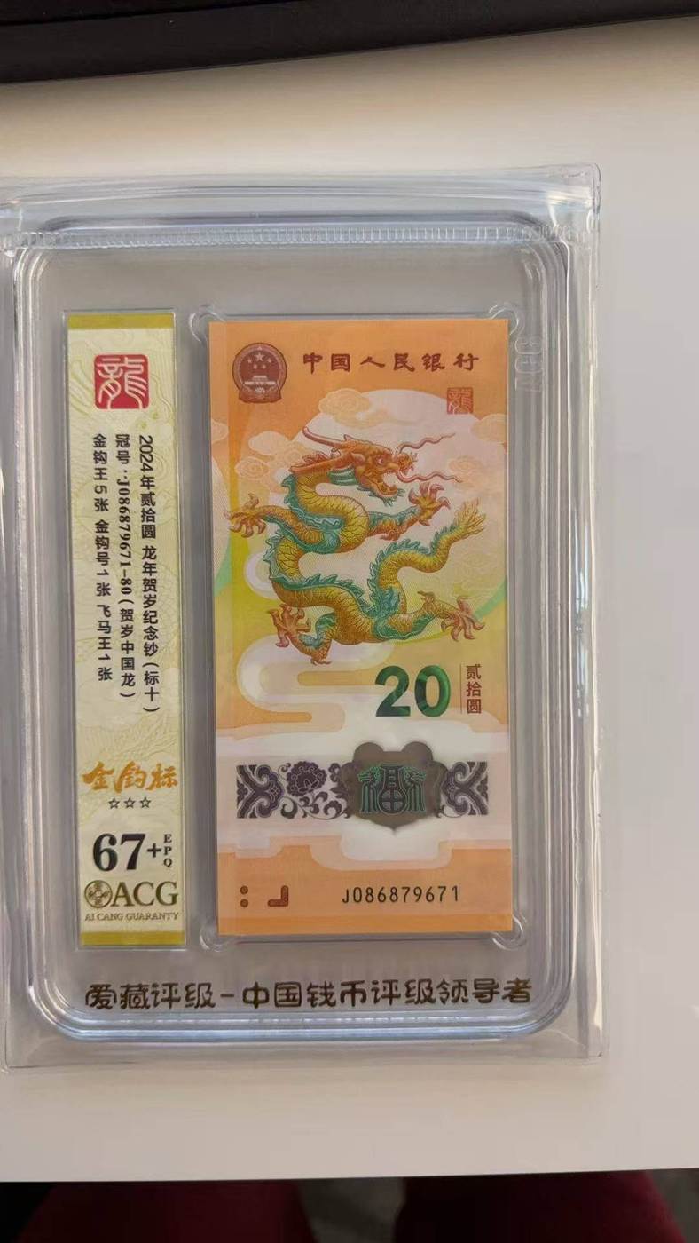 贺岁龙钞金钩王满号标10,号码086879671,爱藏67+3星,4288元包邮顺丰
