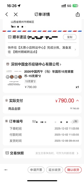 850包顺丰闷包明天到货转寄发出。微信联系确认