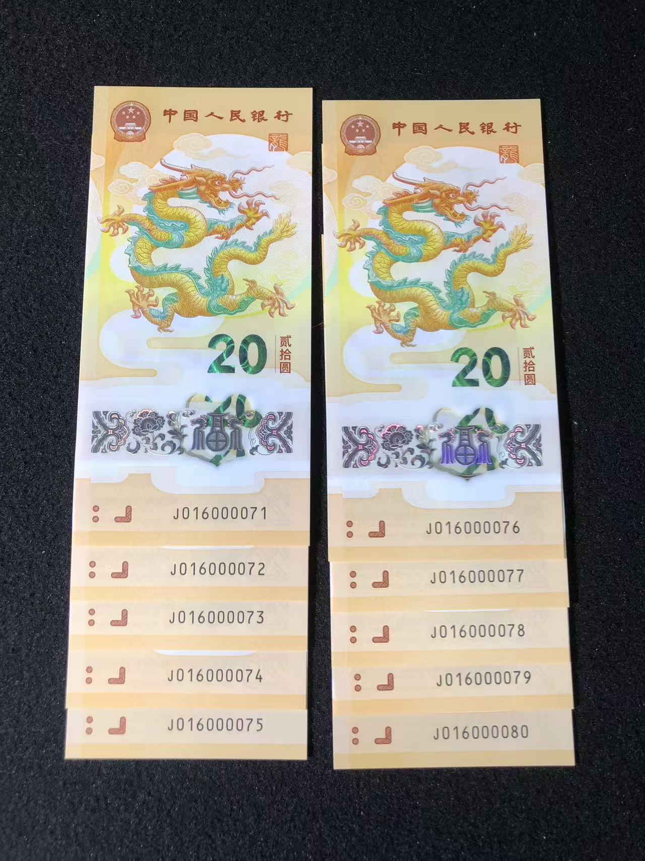 龙钞金钩号标十,每一张都是5龙珠,最后一张0168组合6龙珠,3800出