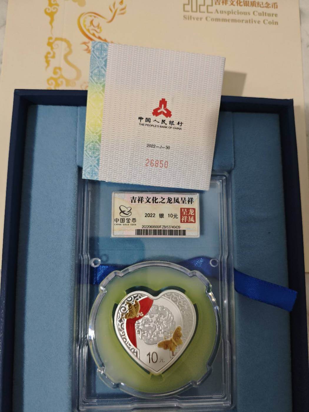 760出龙凤呈祥银币封装一枚,证书编号26850