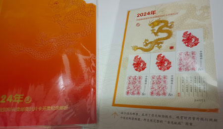 → 售24年贺年有奖邮资封片开奖纪念邮折金龙献瑞