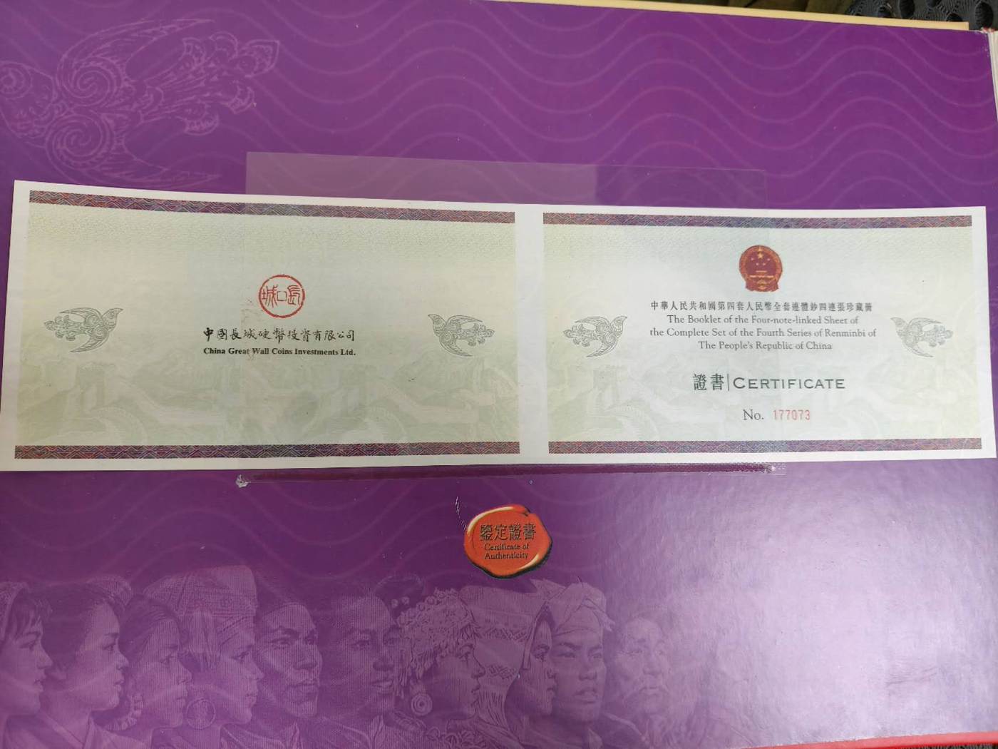 → 人行金总长城四连体(四版)大全套(长城大四)。证书/币尾四同(无四号码)