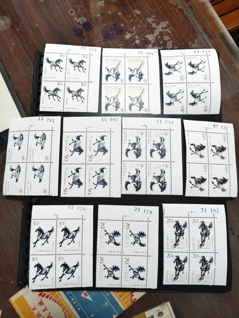 → 奔马角方 带编号 四方连 版号