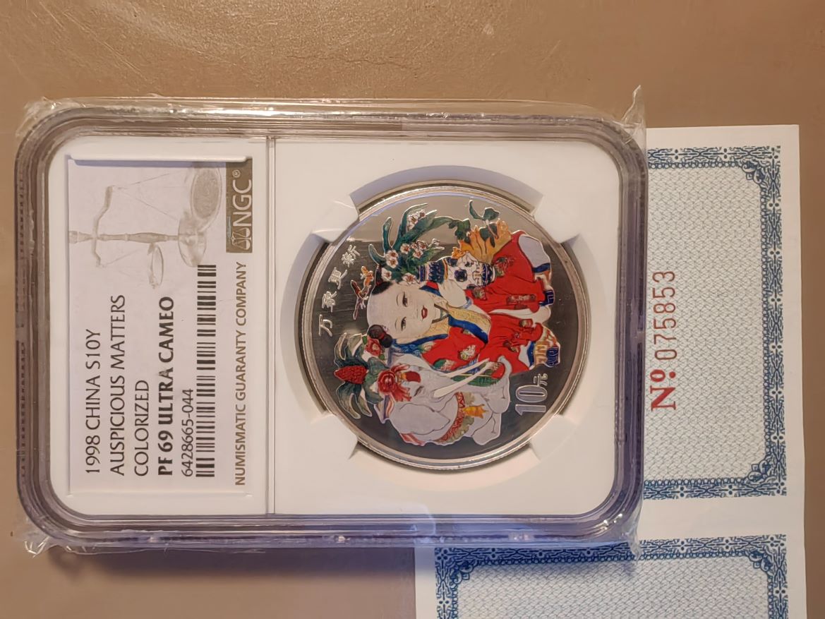 → 出一枚NGC69分1998年万象更新一盎司彩银币