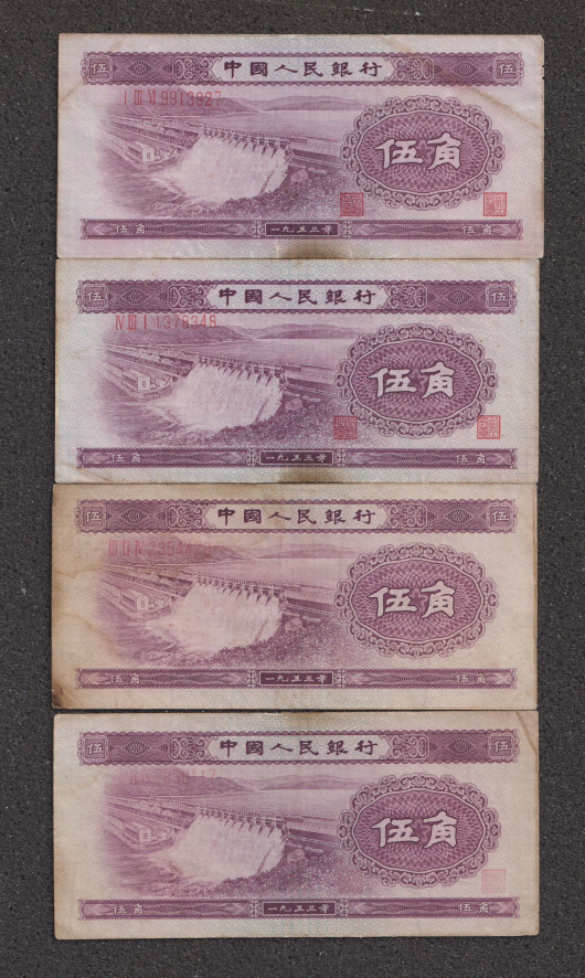 → 配册 宝塔山 黄五元 水坝五角