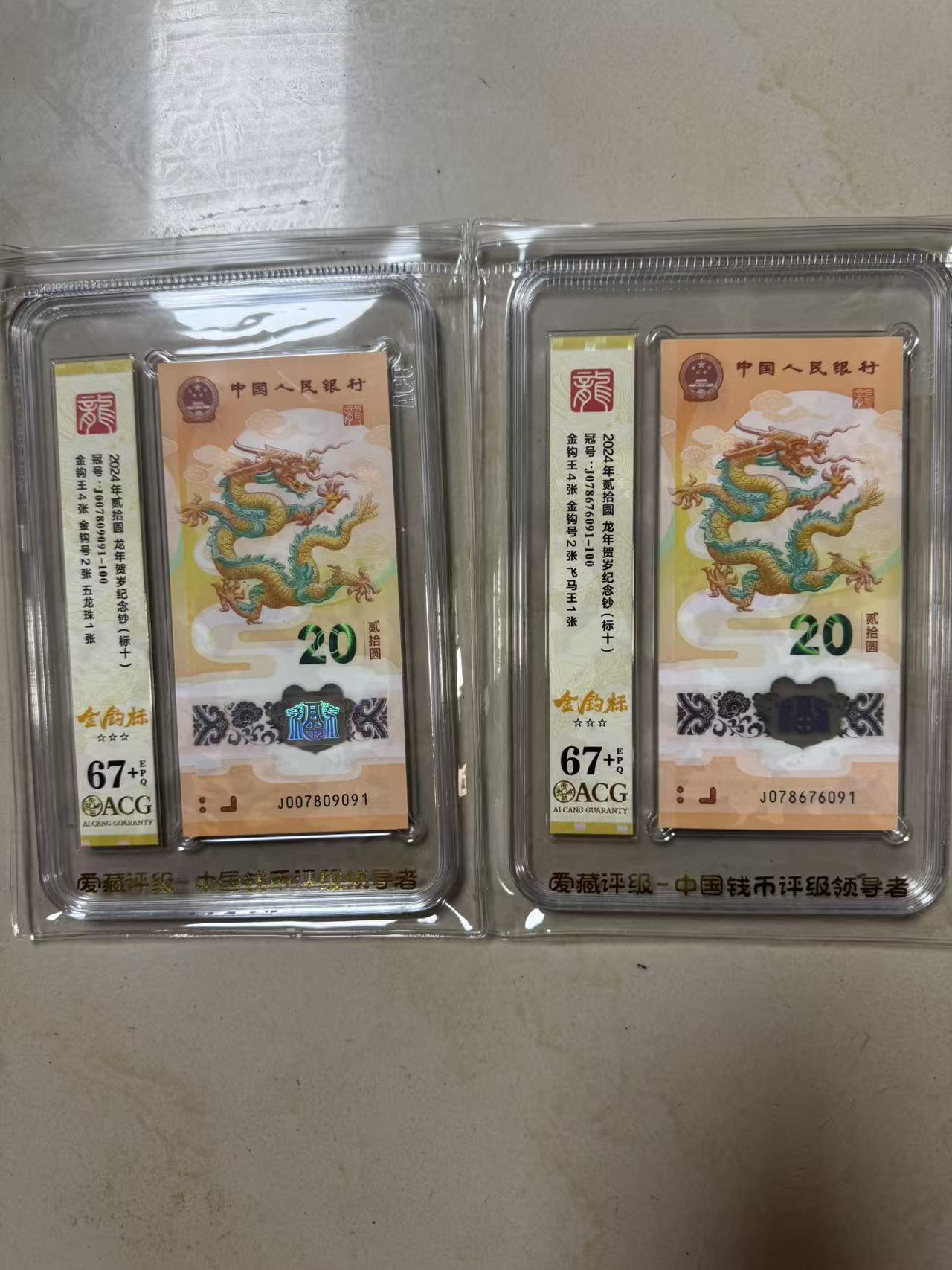 出售龙钞无347标10爱藏67+:7700/组,最后一张龙四,号码如图,2组一起走。