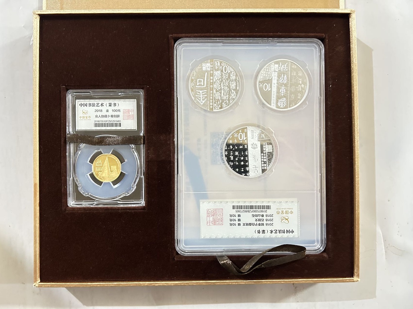 → 中国书法艺术篆书金银币一套。