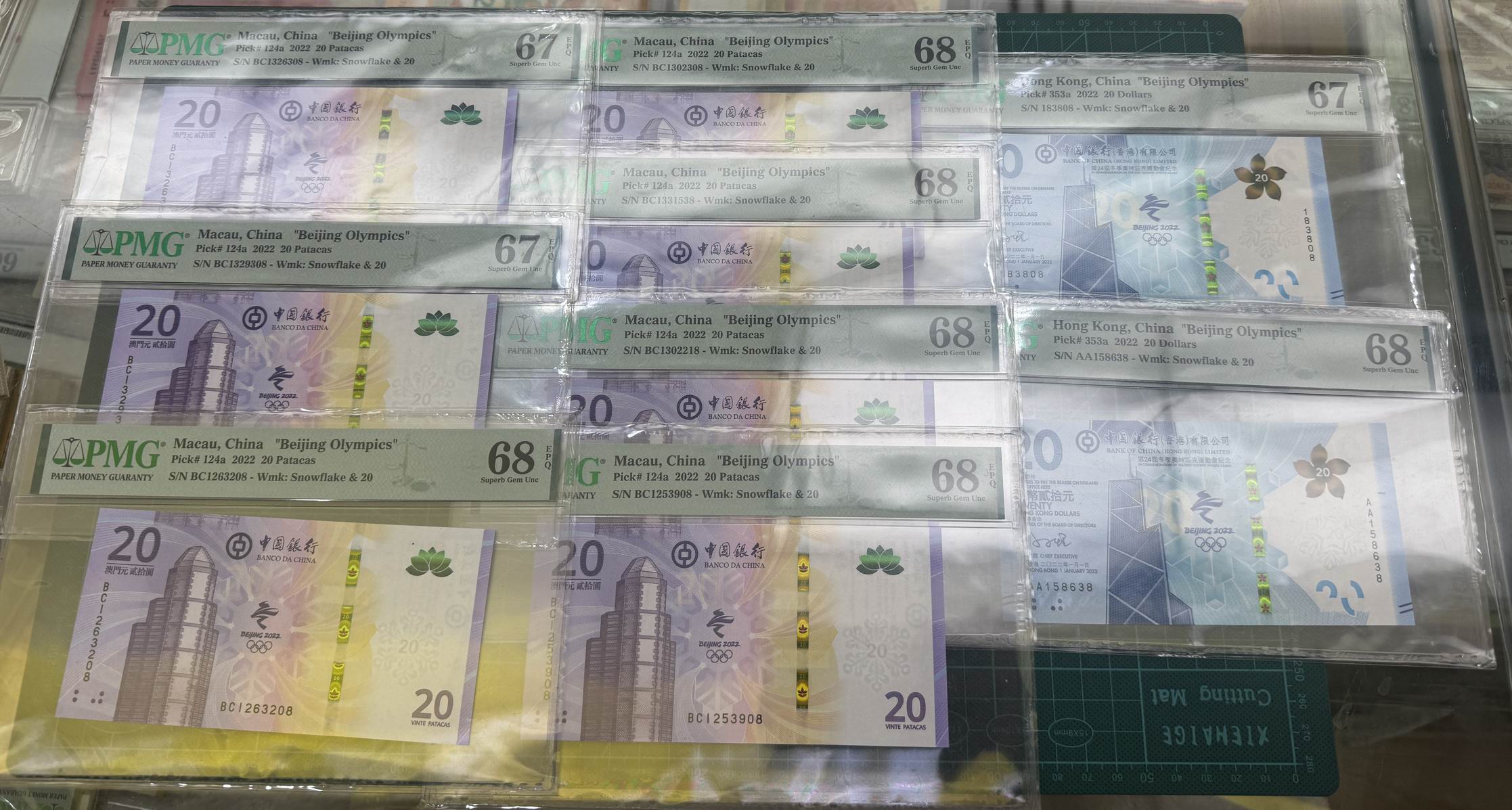 → 出售:PMG评级香港、澳门2022冬奥钞共9张,号码无4、7尾8