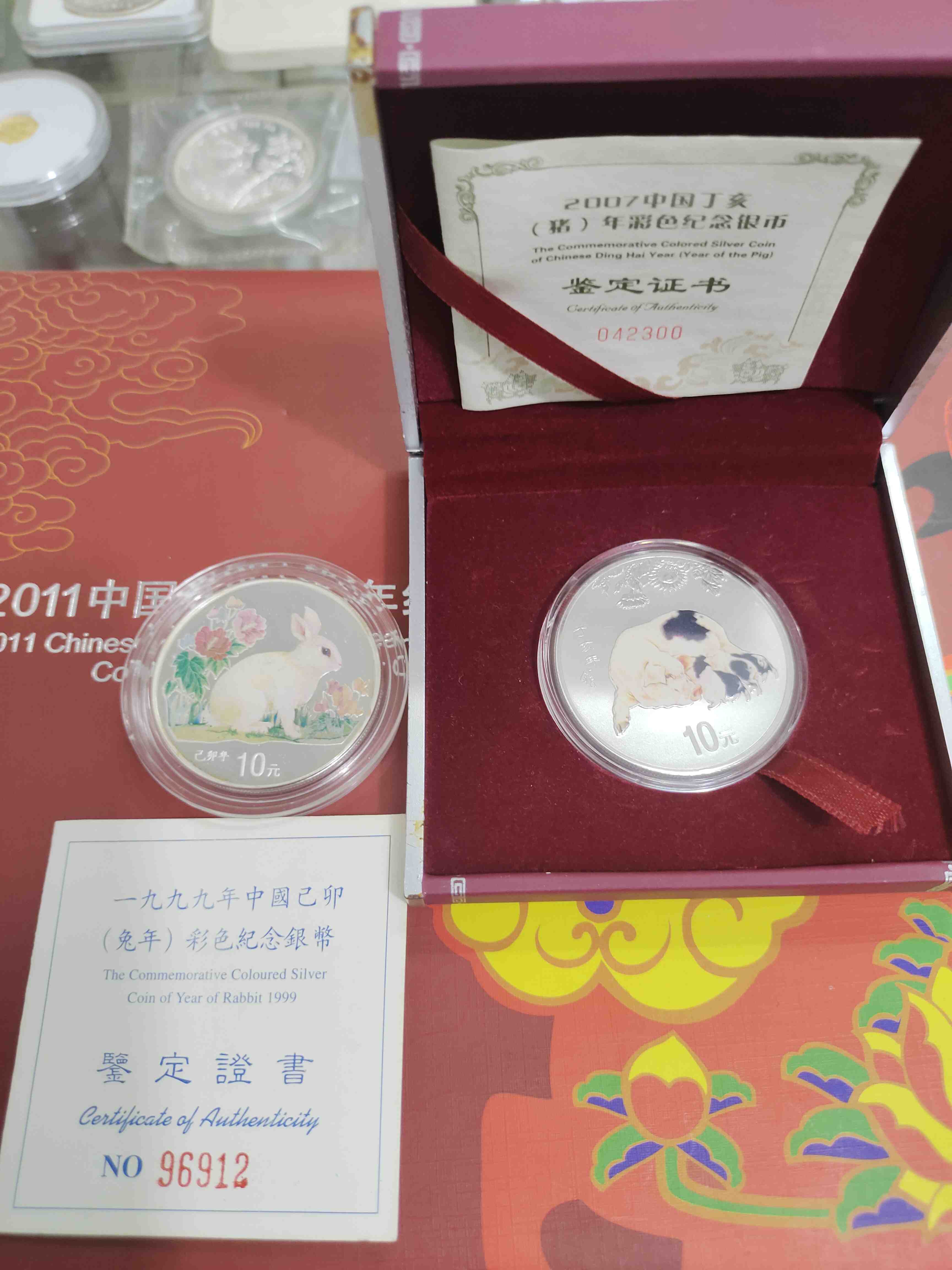 99彩银兔,07彩银猪,12彩银龙,14本银马,兔边上有点氧化,其他3枚都是好品,4枚一起出2320包顺丰,议价勿扰