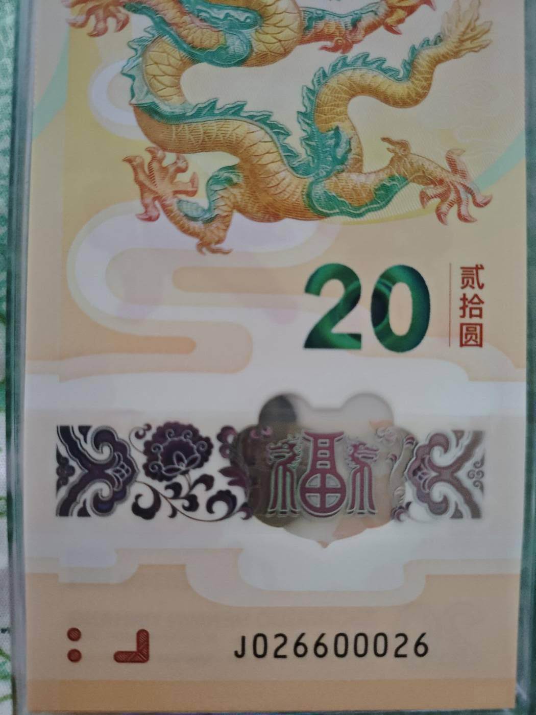 6350出026龙钞,全偶龙三,正序026头,正序026尾,带豹子身000,肉眼无明显指甲印