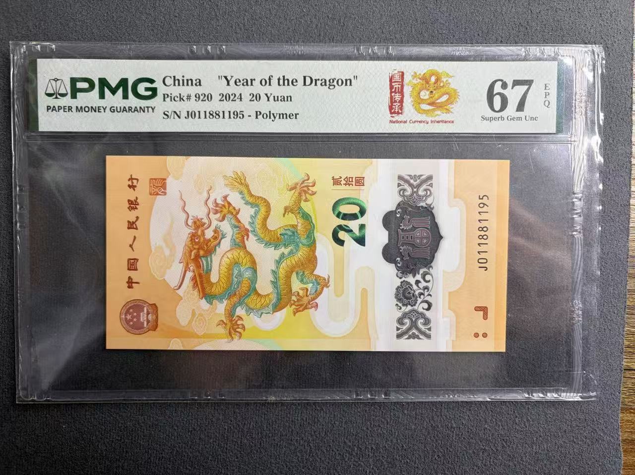 出龙钞金马尾95 PMG67分 2500元