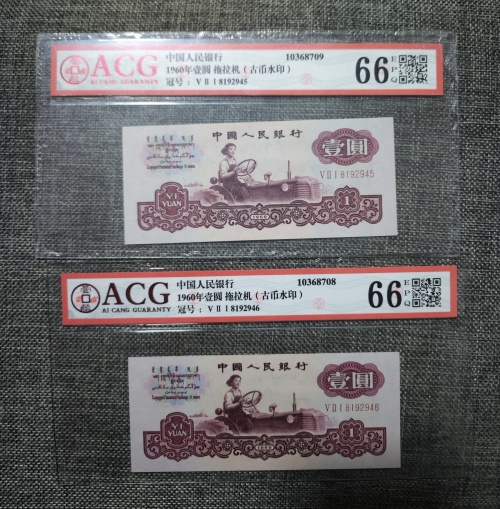 → ★★★古币水印拖拉机深版66分两连号★★★