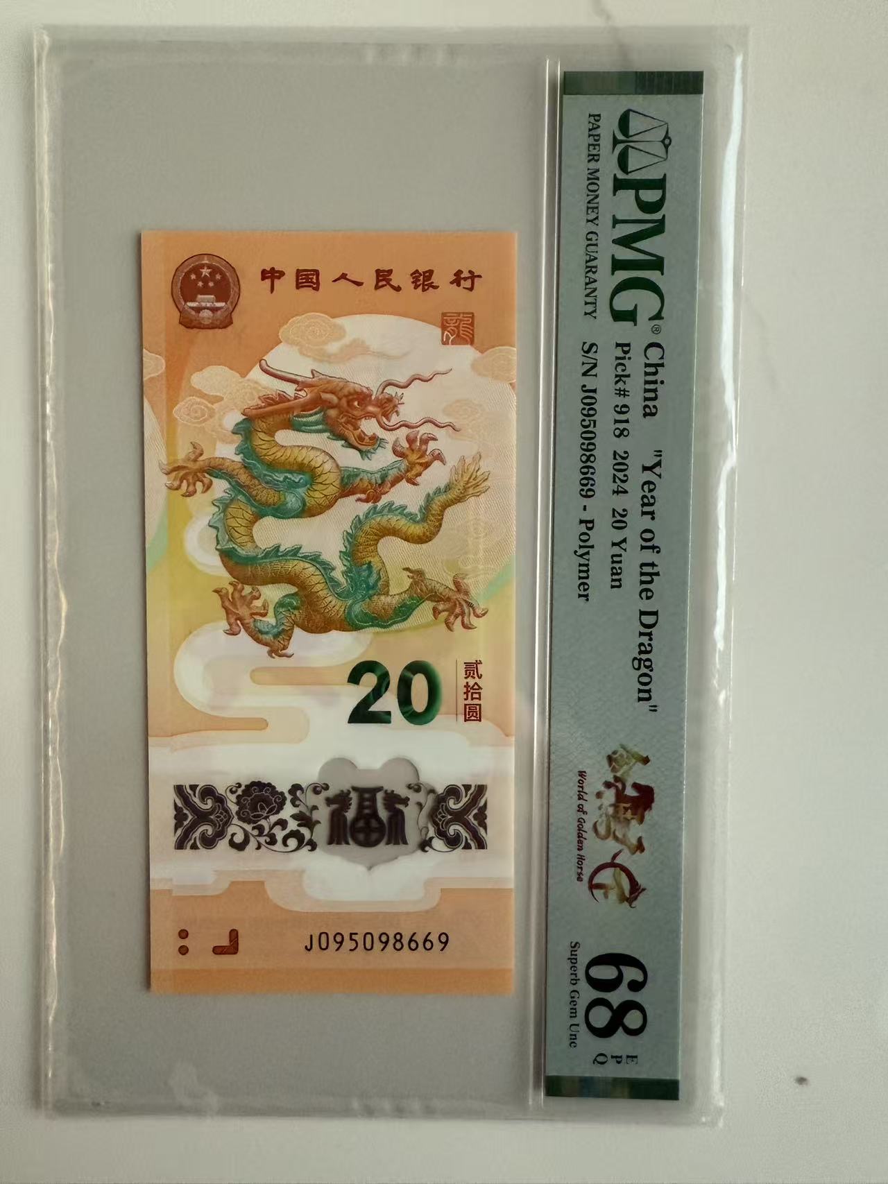 贺岁龙钞095头金马天下标,pmg68分,号码095098669,6888元先款包邮顺丰,不议价,微信看图确认,谢谢,微信15329096777