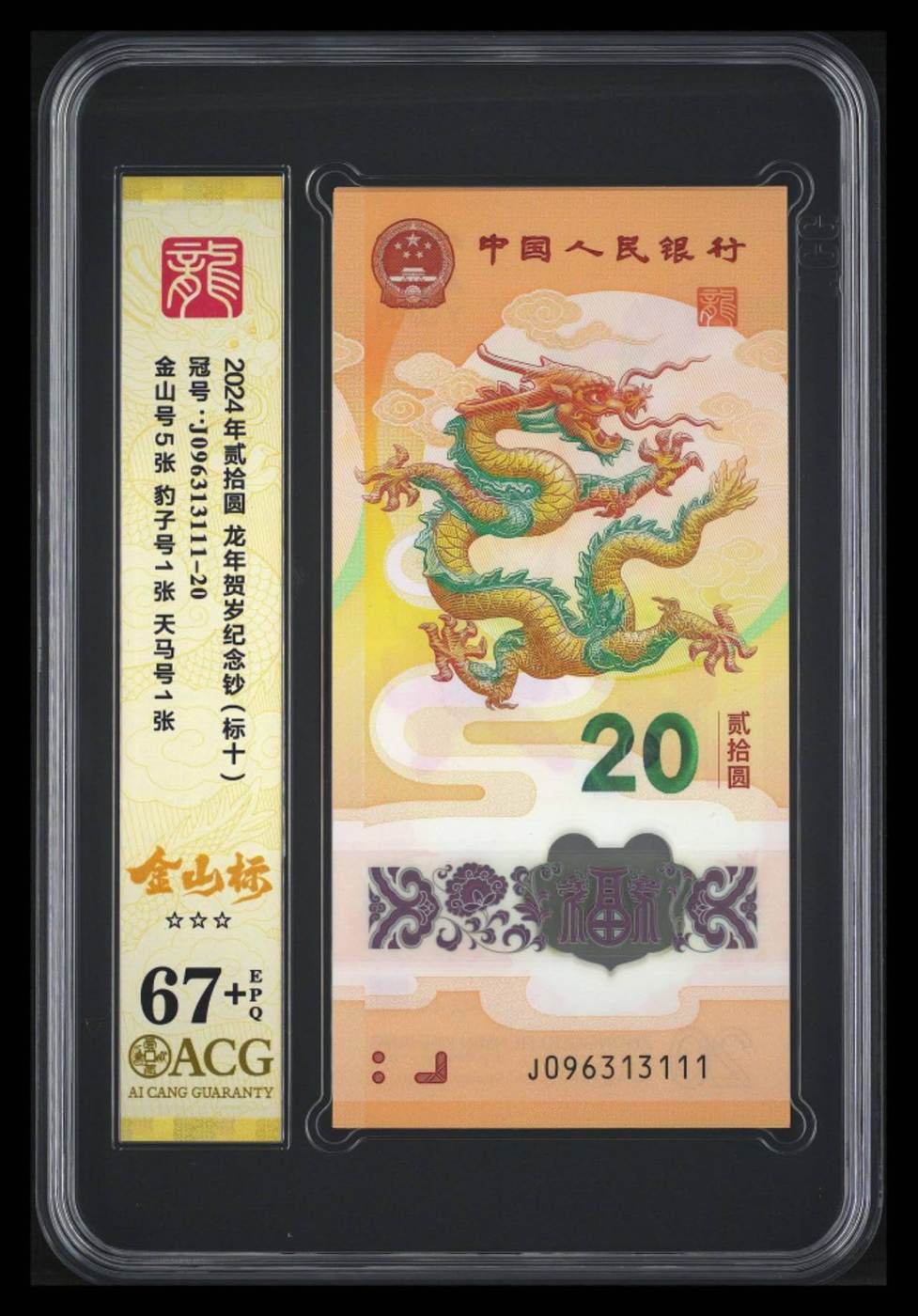 请友确认一组龙钞无47标十含豹子号111,爱藏67+,具体号码见照片。款到发货!