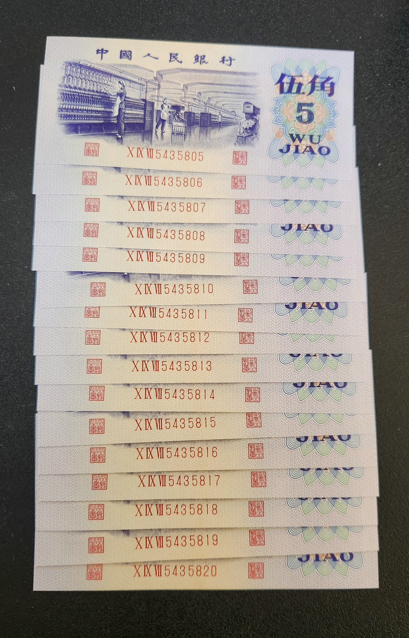 五角097长码光辉补号16连+7连共23张含一个标十。捆拆全新灯下无斑如图,通走130元一张