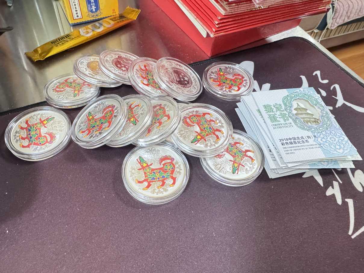 2018年彩银狗,带证书,全新好品相,一个30克,单价465元。有14个
