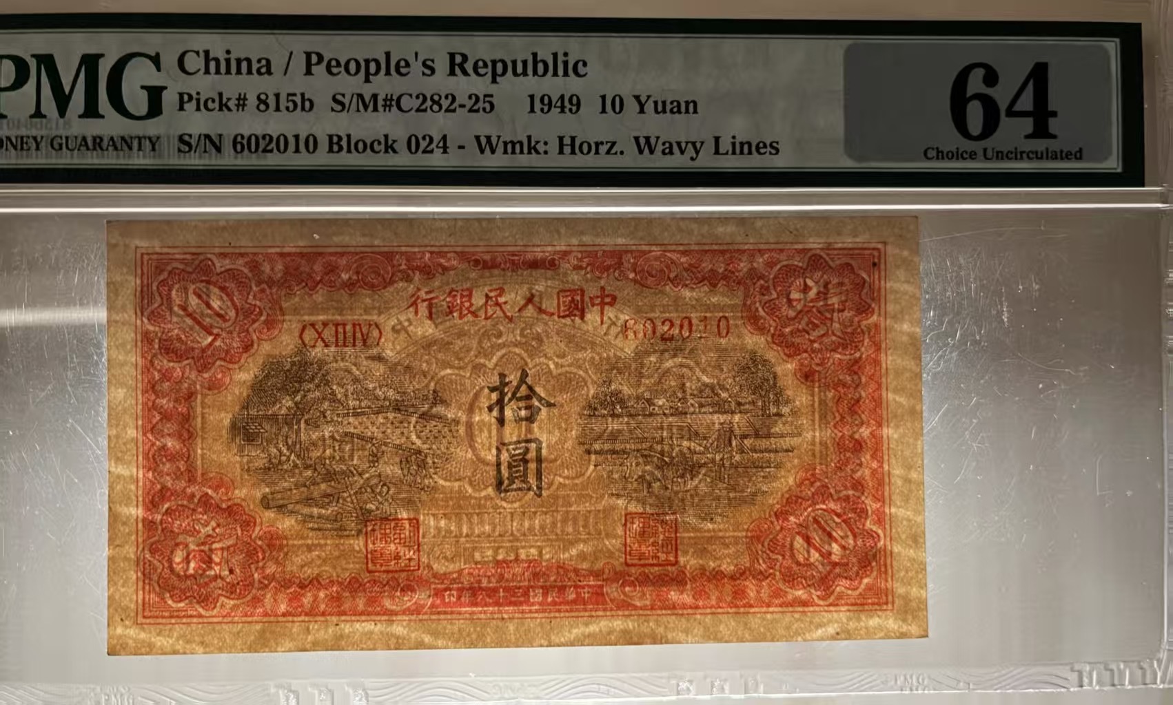 一版锯木犁田美评PMG64主流分,全新直版朦胧号,水印清晰,状态自然,售价5180包顺丰