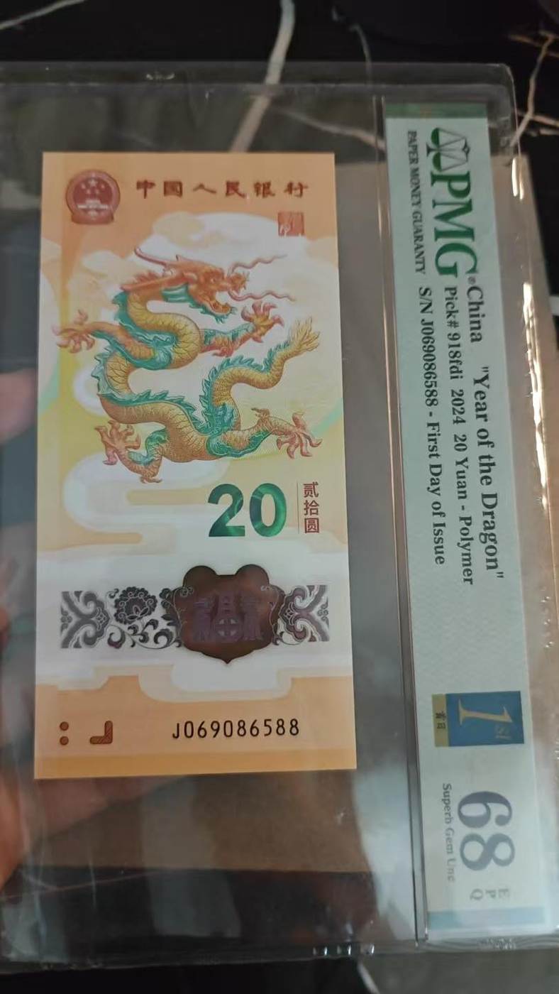 出小龙钞首日金兰标pmg68分金马王尾88