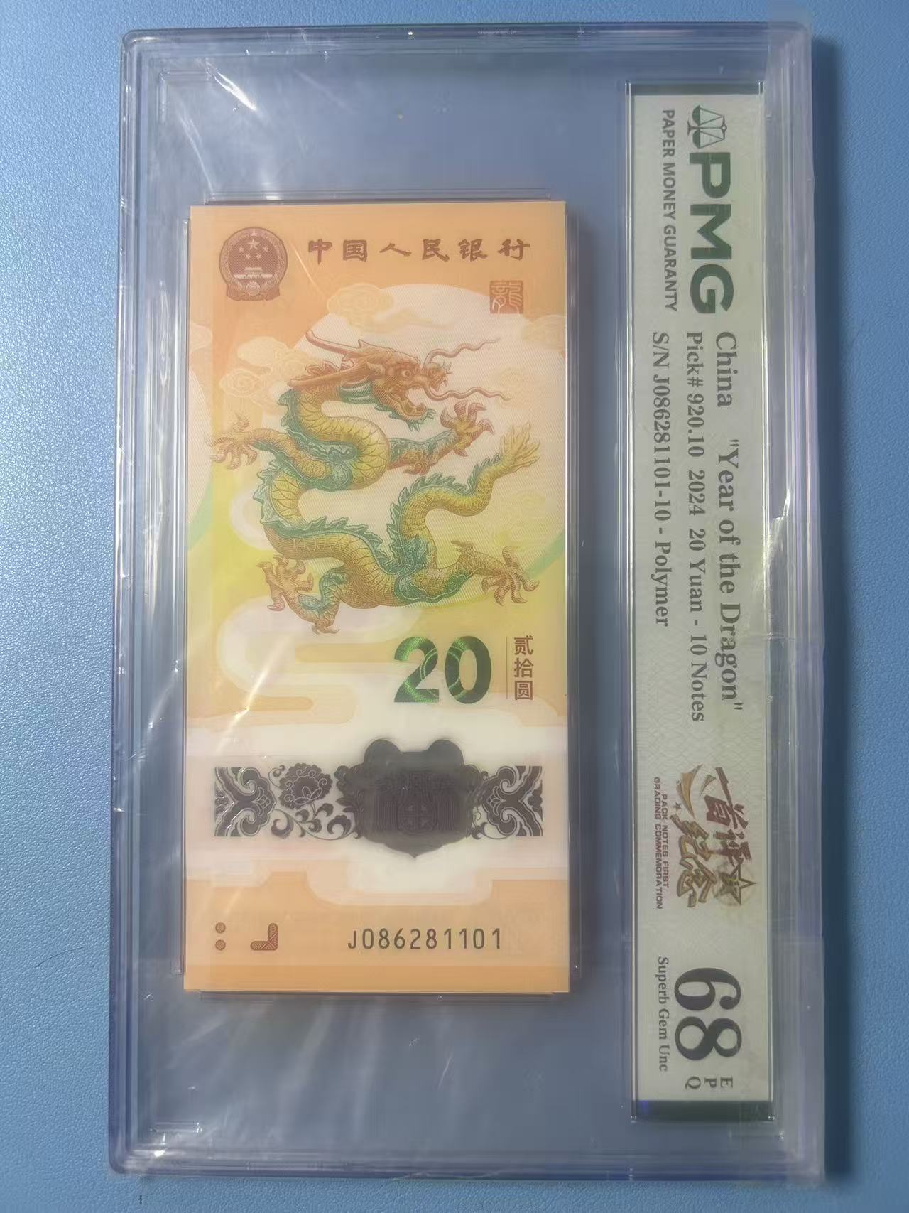 PMG68小龙钞086头朦胧标十