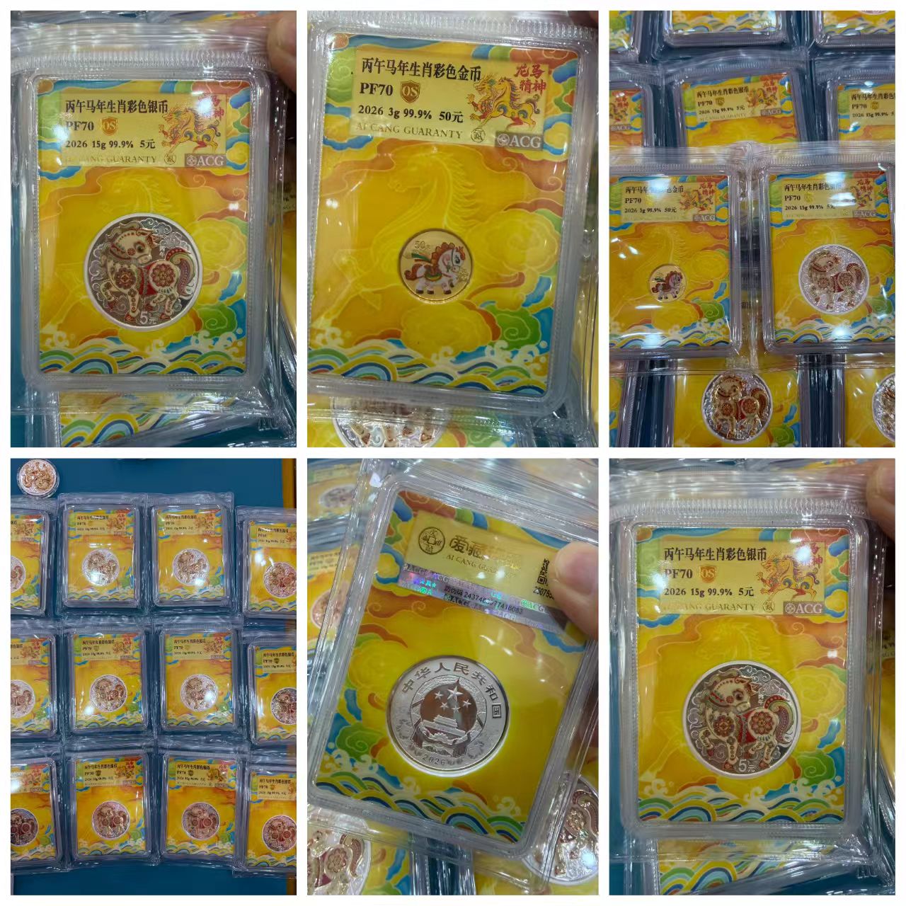 批发爱藏评级15克小彩马,70分的3克金+15克银,70分的,,证书号码全部给无47,配原盒。